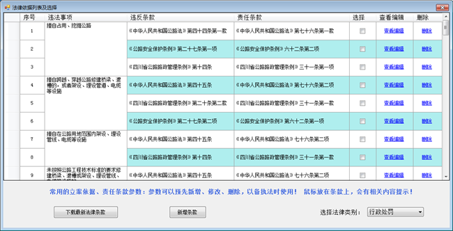 其中法律条款可以事先录入,以供执法时使用;或者也可以下载网站最新的法律条款到客户端。
