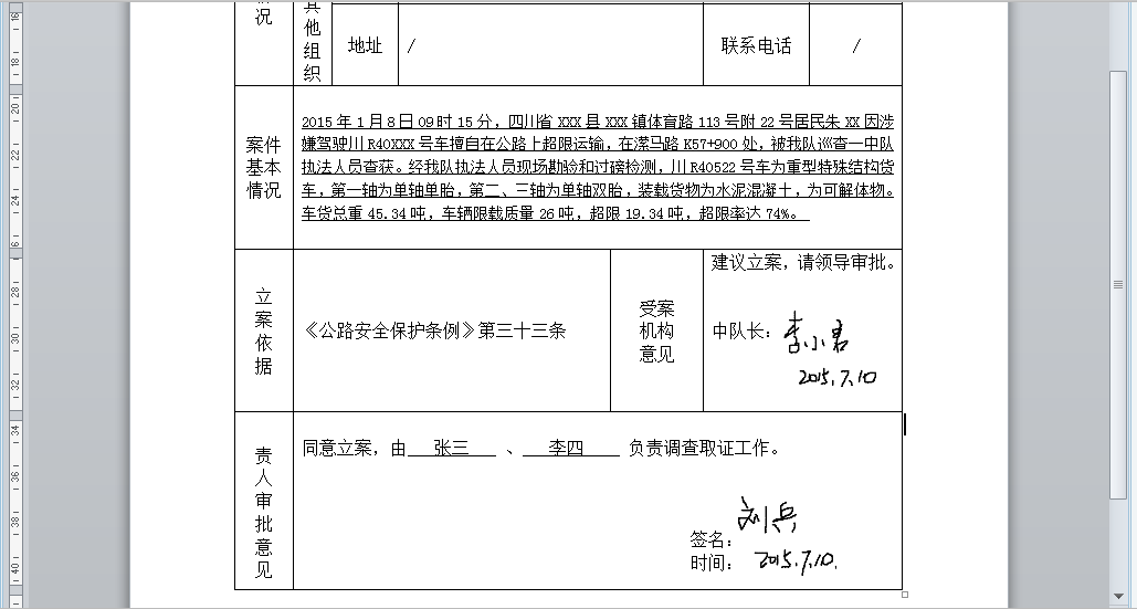 本系统在设计开发时,就与自治区交通厅公路局路政处、运管局、法规处、执法支队、执法大队一线的执法人员等单位进行了深入沟通,特别是路政业务部分既参考了交通部的一些文件与法律规定,又结合各省的实际情况,制定了交通综合执法文书格式、同时执法文书模板可以随时更换。案卷处理部分力求精简、操作方便、一目了然,而且还支持Office文档在线编辑,更支持执法文书、案卷审阅在线电子签章,这为执法人员现场制作案卷与领导电子签批执法文书提供了极大的方便。我方专门针对网络不畅通地区专门开发了交通综合执法管理客户端,支持在没有网络的环境下离线制作案卷文书,等有网络的时候上传至市路政大队网络平台。另外本系统结合实际情况,支持手机短信提醒催办、微信提醒催办、APP移动端信息查询,为通知公告发送、案卷审阅提醒、新政处罚自由裁量权标准、公路赔补偿标准、车辆登记注册信息查询、车辆违法信息查询提供一个快捷、可靠的办法。